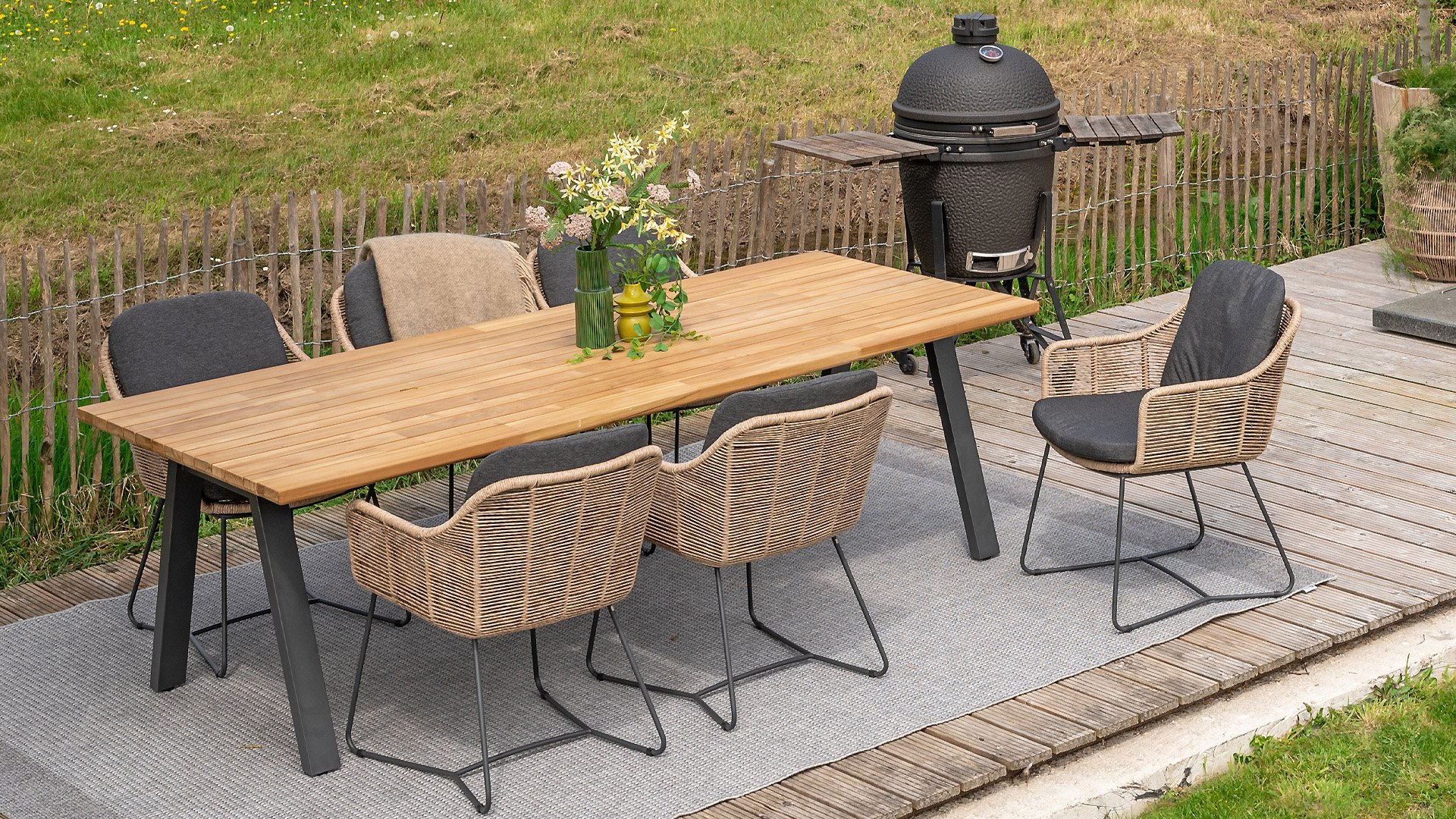 Beautiful, Bold, Belmond Een gewaagde combinatie van een opvallend onderstel met elegante afgeronde hoeken van het frame met een strak patroon van vlechtwerk in antraciet of beige. Belmond Dining van 4Seasons heeft het allemaal, geniet van deze uitgebreide serie.