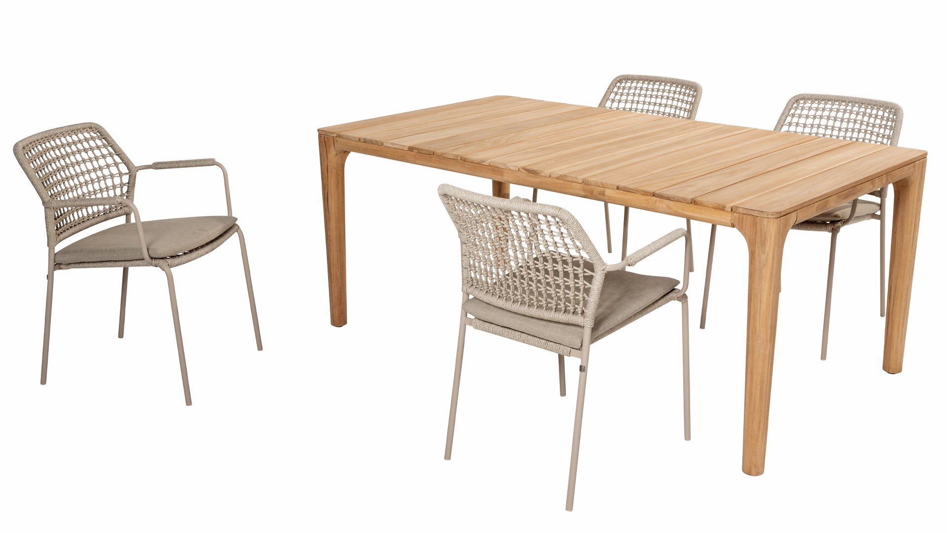 Met de Liam tafel van Taste 4SO kunt u genieten van de tijdloze charme en duurzaamheid van teakhout terwijl je dineert in de open lucht. Verkrijgbaar in volledig teakhout en teakhout-keramiek: