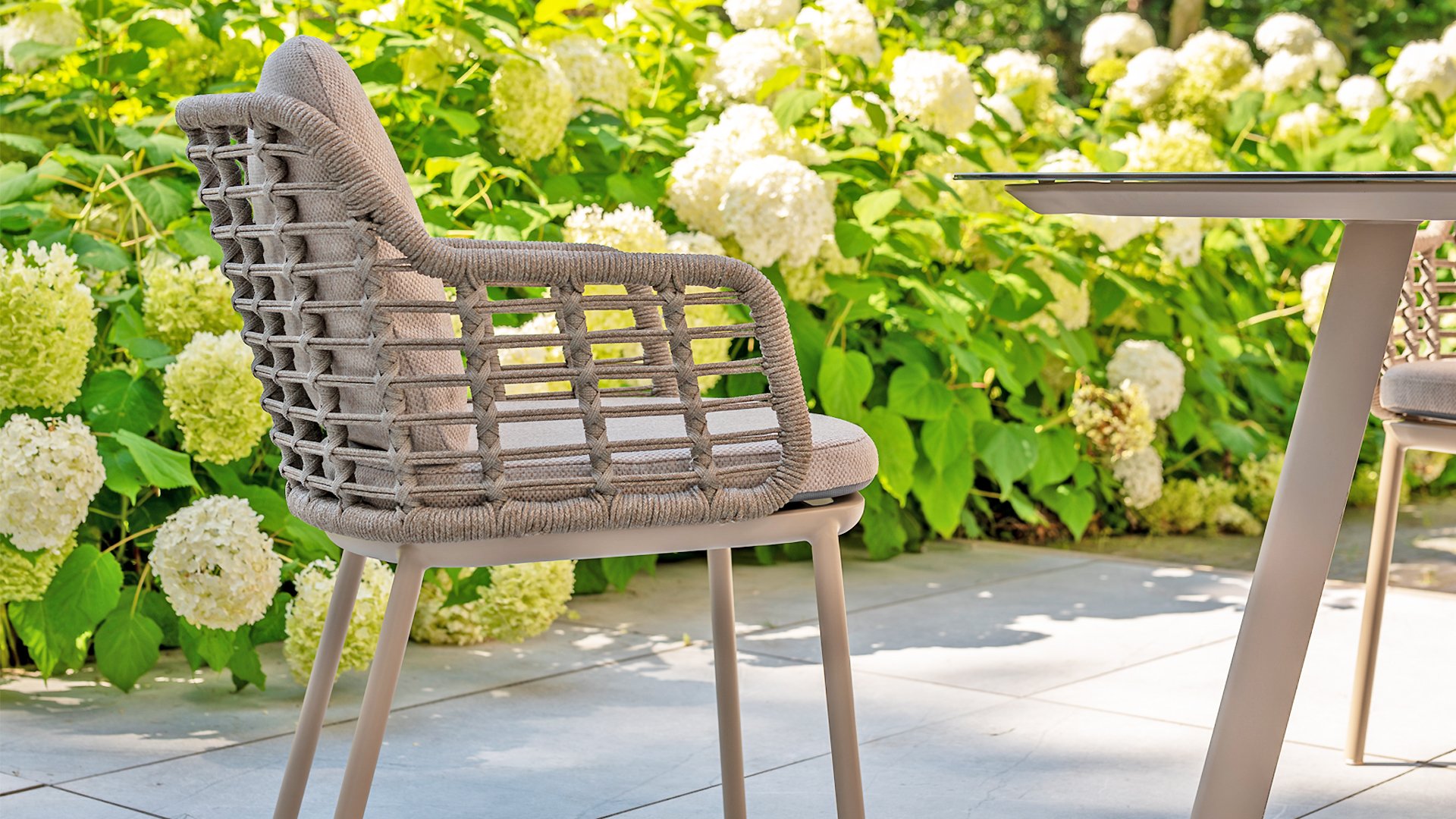 Haal de warme, authentieke sfeer van Zuid-Italië naar uw eigen terras. Deze collectie is een absolute topper voor wie op zoek is naar een combinatie van hoogstaand design, organische vormen en ultiem zitcomfort. De kracht van de Puglia-serie zit in de slimme mix van materialen. Het frame is gemaakt van gepoedercoat aluminium; lichtgewicht en roestvrij. De rug- en armleuningen zijn vakkundig gevlochten met hoogwaardig rope draad. Dit geeft de stoelen en banken een open, luchtige uitstraling die perfect past in de moderne tuin. Om het comfort compleet te maken, zijn de meubelen uitgerust met kussens van Olefin stof. Dit materiaal is niet alleen heerlijk zacht, maar ook vuilafstotend en weerbestendig. Een onverwachte zomerbui is dus geen enkel probleem.